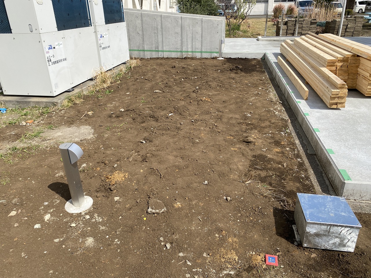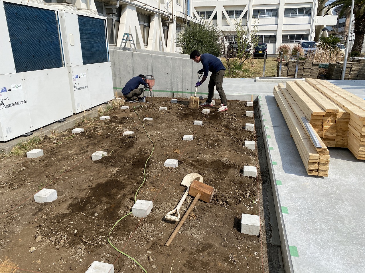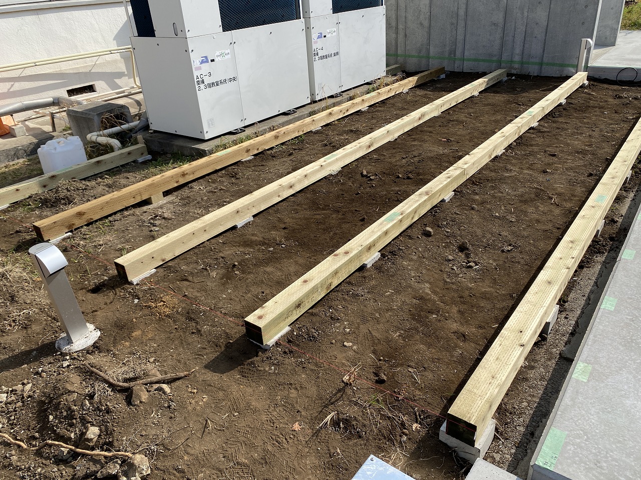 墨出し後、基礎となるブロックを定位置に設置していきます。