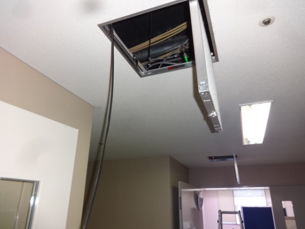 横浜市金沢区内の施設にて、大型液晶テレビの設置工事を