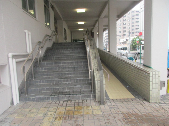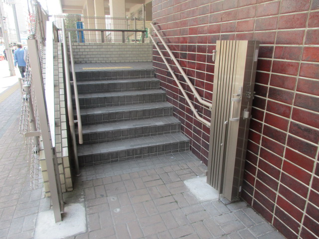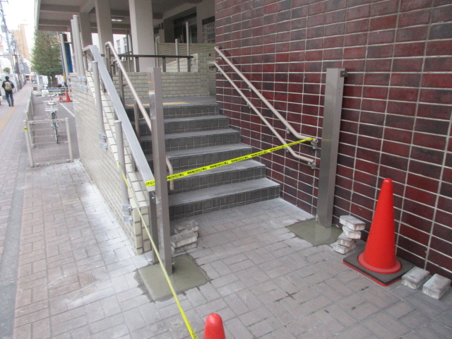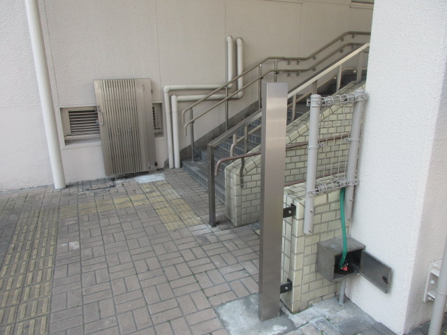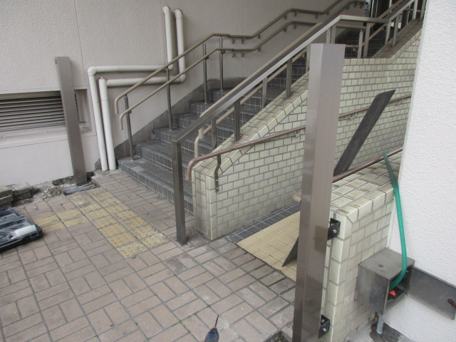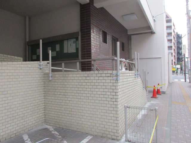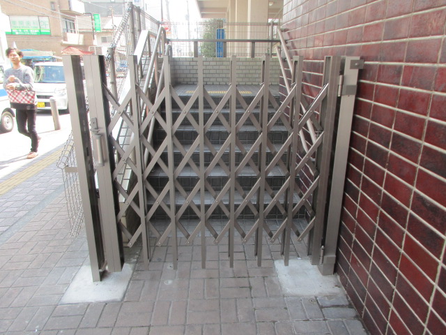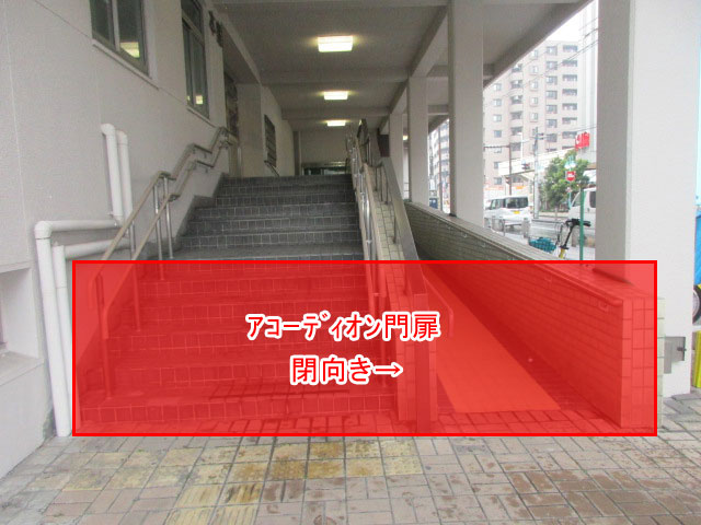 出入り口スロープの腰壁にH600のフェンスを新設する工事とアコーディオン扉H1450を2箇所設置する工事です。