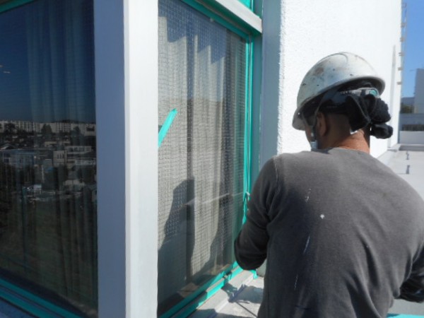 清掃・プライマー塗布→シリコンコーキング処理→マスキング撤去