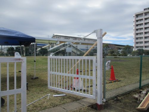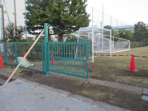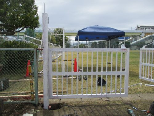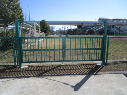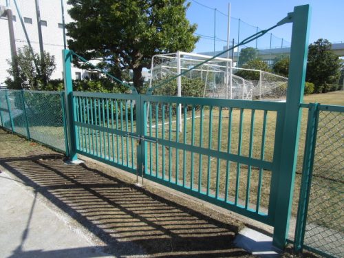 グラウンド内の備品搬入用の門扉を新設させていただきました。