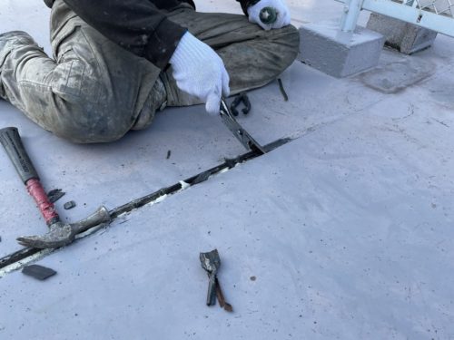 撤去したエラスタイト目地の代わりに、シーリング材を充填いたします。