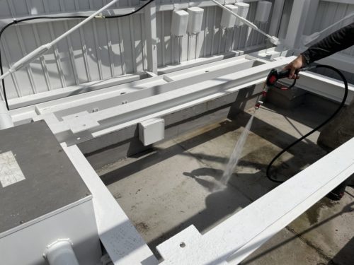 まずは、高圧水洗浄作業をし、下地をきれいにします。