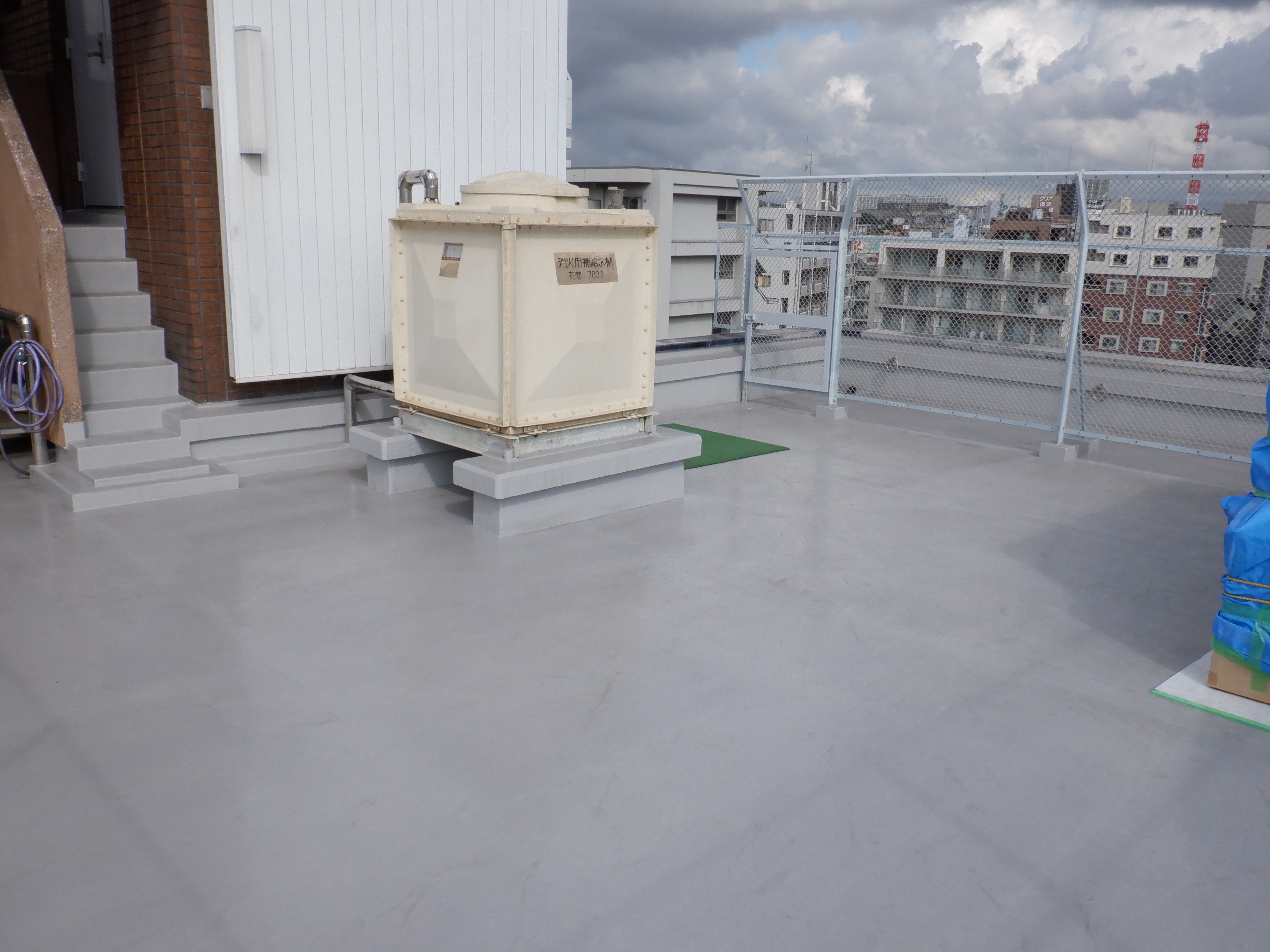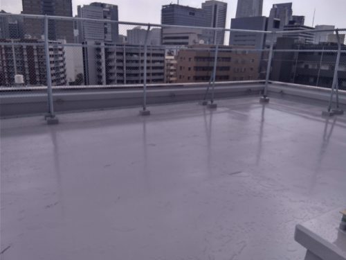 晴れた日に屋上にあがると、遮熱のトップコートにより照り返しの光で地面が眩しく直視できないぐらいでした。