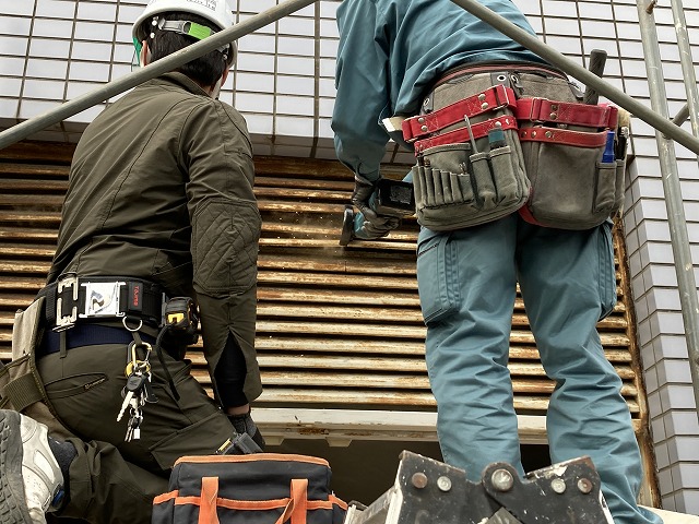 溶接で焼けてしまった塗料は研磨により撤去し、再度錆止め塗装を行います。