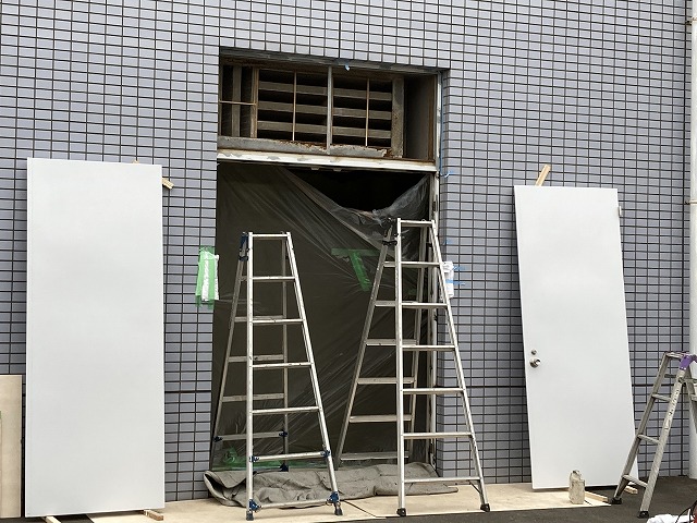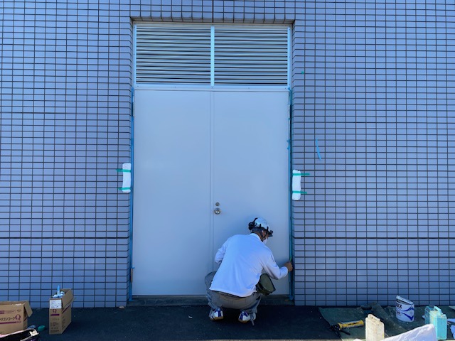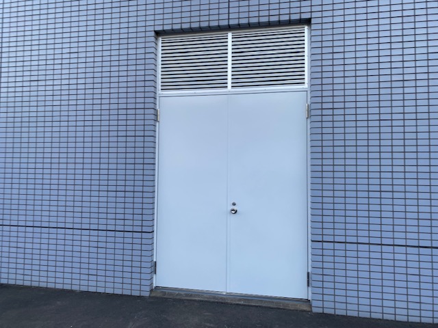 今回ご紹介させていただく工事は、市内企業様からご依頼いただきました、両開きスチールドアの改修工事です。