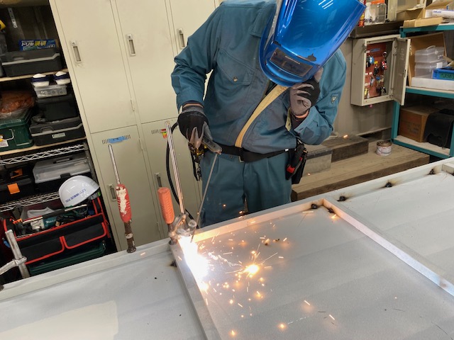 下地・鋼板の溶接はアーク溶接にてしっかり溶接します!