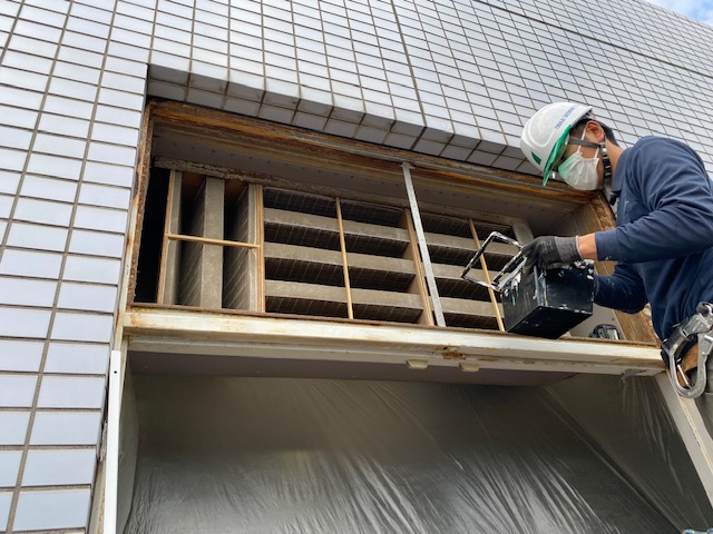 室内側のダクト類は改修済みということで、弊社はドア・ガラリの交換を行わせていただきます。