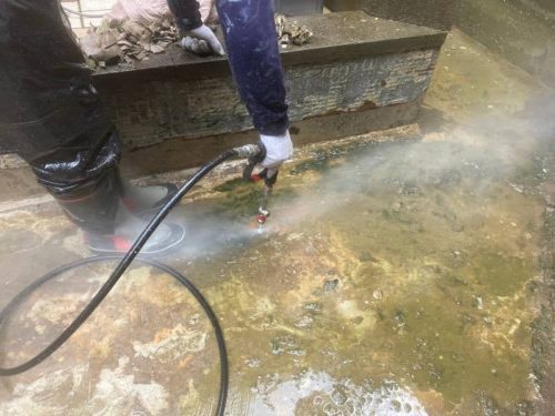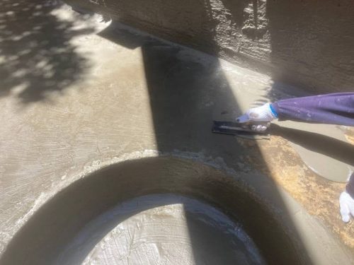 今回の防水材は一般的な溶剤系のものではなく、無機防水と呼ばれるものを採用致しました。