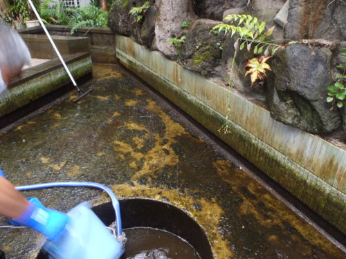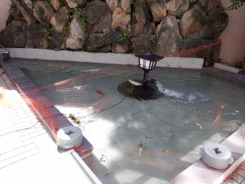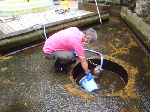 池の中の防水がどこかで切れていて水が漏れているのではないかということに至りました。