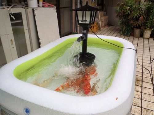 子供用のプールに一時避難したら全部で大小30匹ぐらいいたようです。