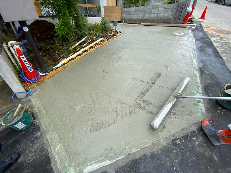 刷毛引き仕上げ・既存土間の補修左官をして完成です!