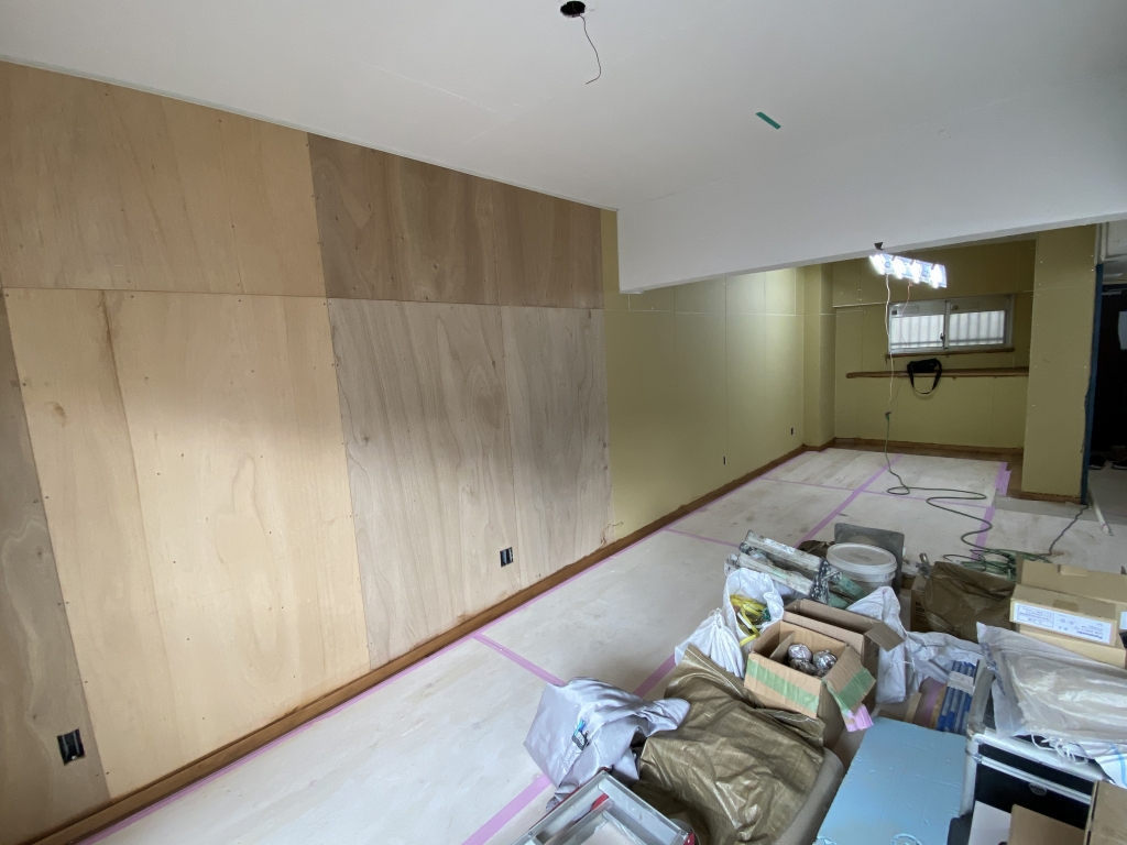 今回は天井は塗装・壁はボード貼りの仕様で