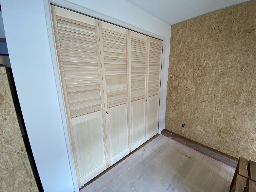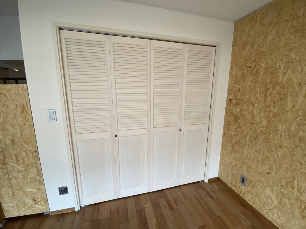 ホワイト系ステインにてクローゼットを塗装します。