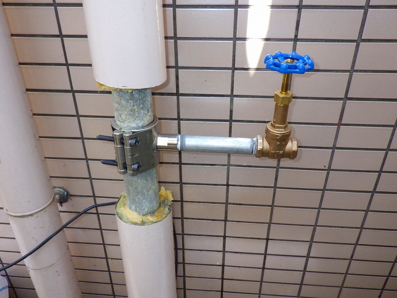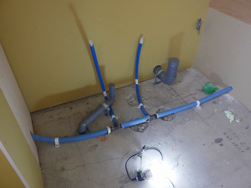 外部配管のラッキングを終えて水道メータボックスも新設!