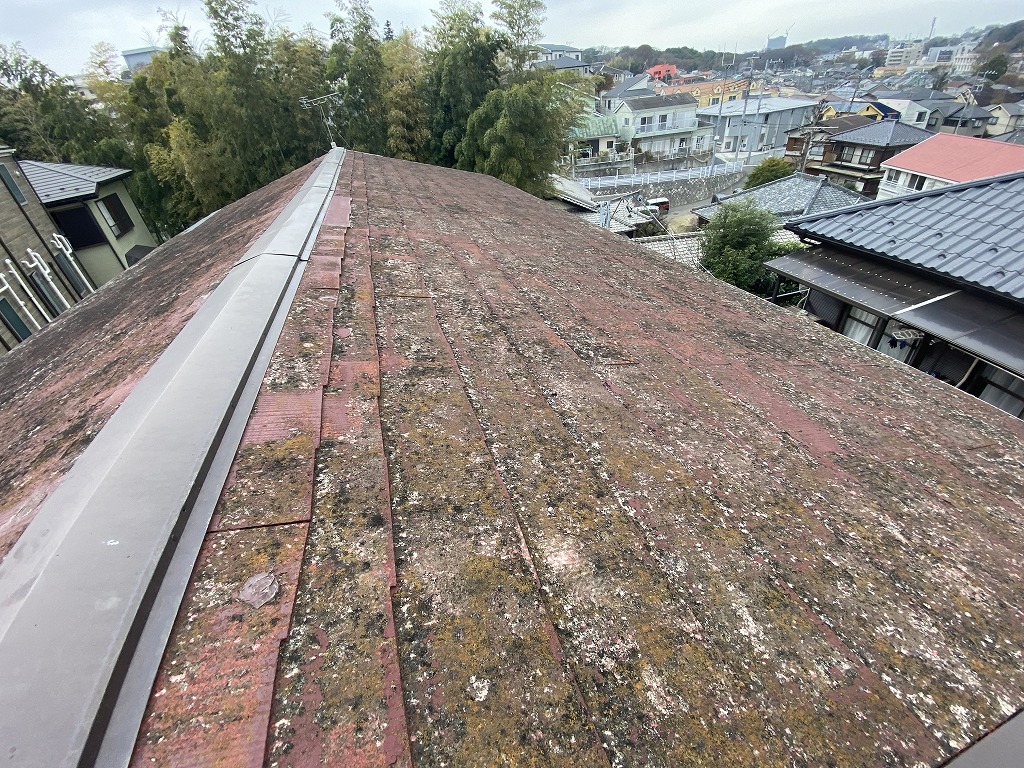 スレートも波打っており、塗装をすることで毛細管現象で雨漏りをする事も有ります。