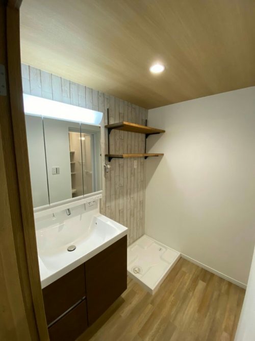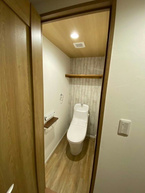 トイレ、洗面には造作棚を設置しており収納アップ
