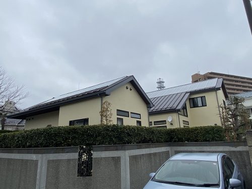 屋根には集熱ガラス(OMソーラシステム)と呼ばれるものが有り、