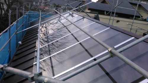 塗装後屋根に集熱ガラスを戻して屋根の工事は完了。