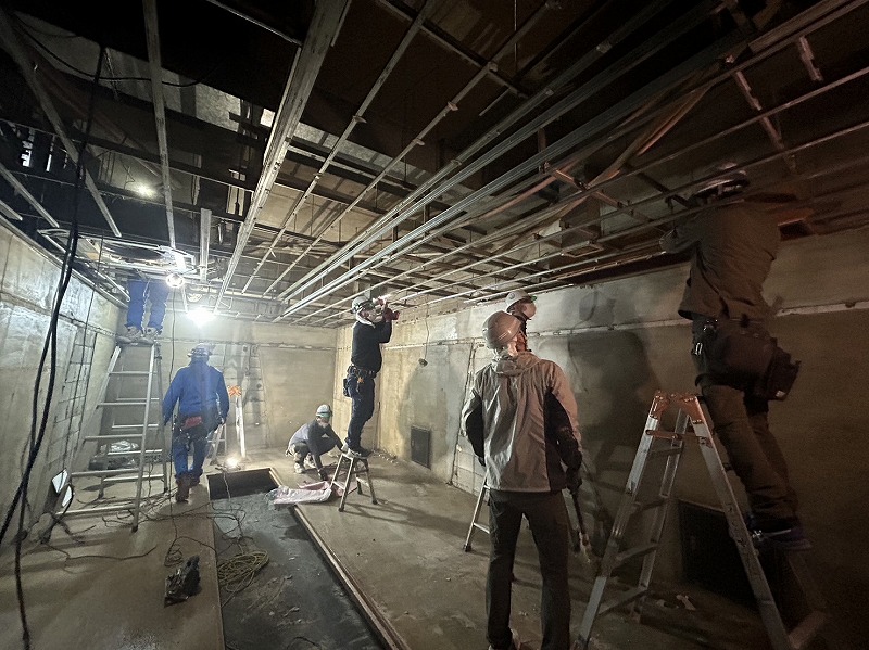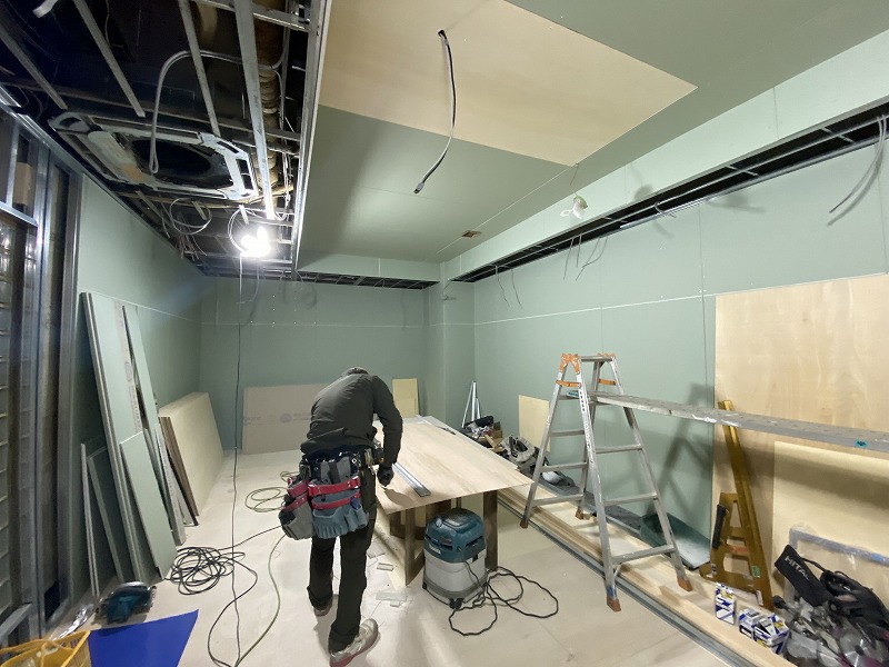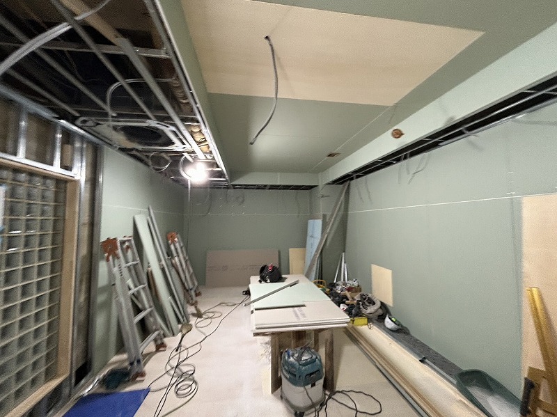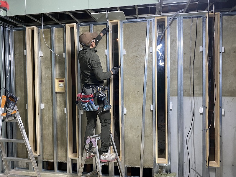 軽量鉄骨(LGS)をたてて、ボードを張っていきます。