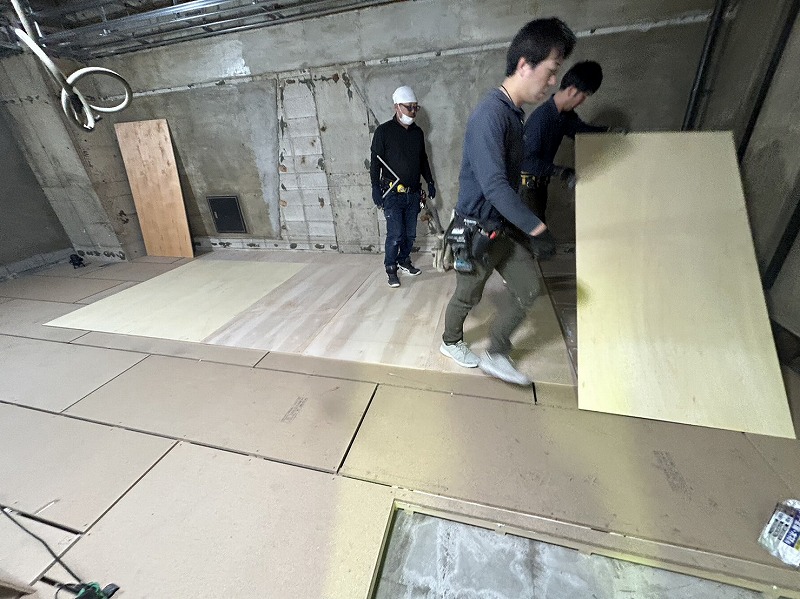 今回天井にプロジェクターを設置する為、下地にベニヤを仕込んでおきます。