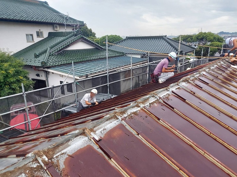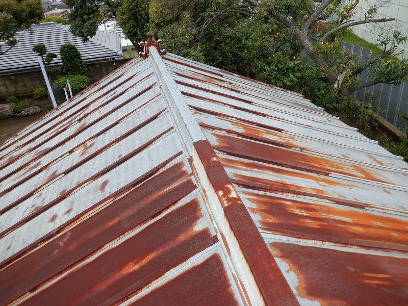 腐食が激しく塗り替えでどうにもならない箇所があり、葺き替え工事で見積もり提案し工事に至りました。