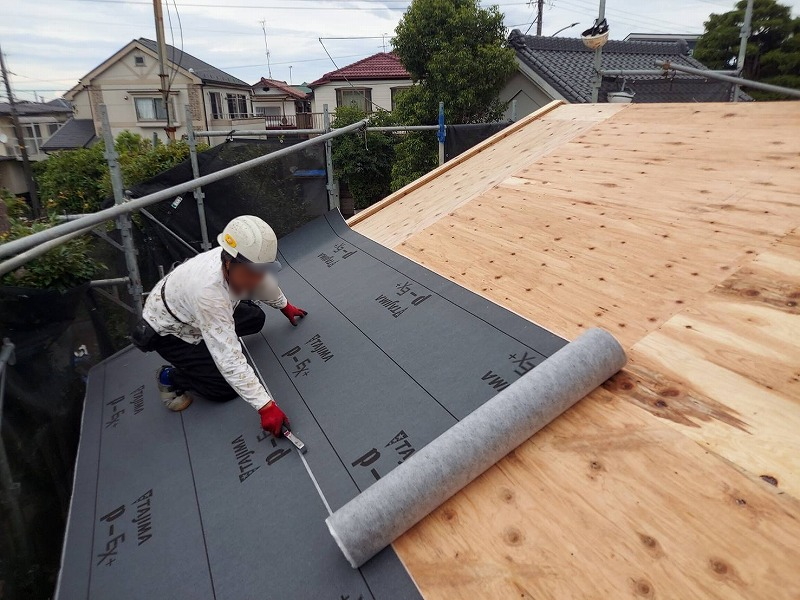 ゴムアスファルトルーフィング(改質アスファルトルーフィング)による施工を行いました。