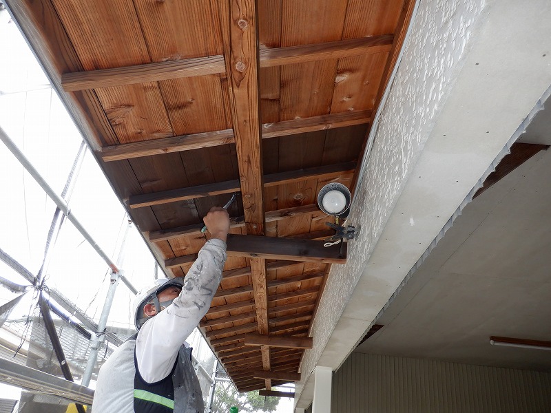 併せて、屋根軒部と外壁の塗装工事を行います。