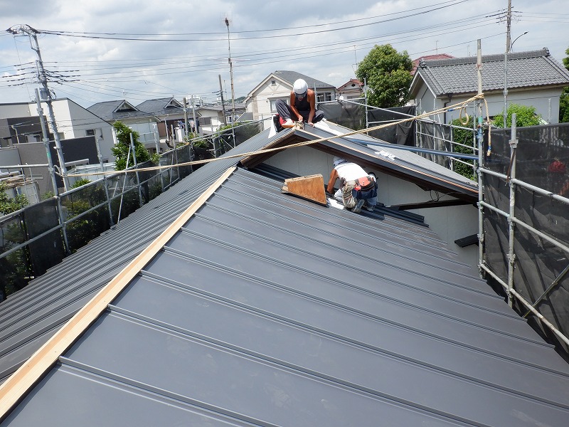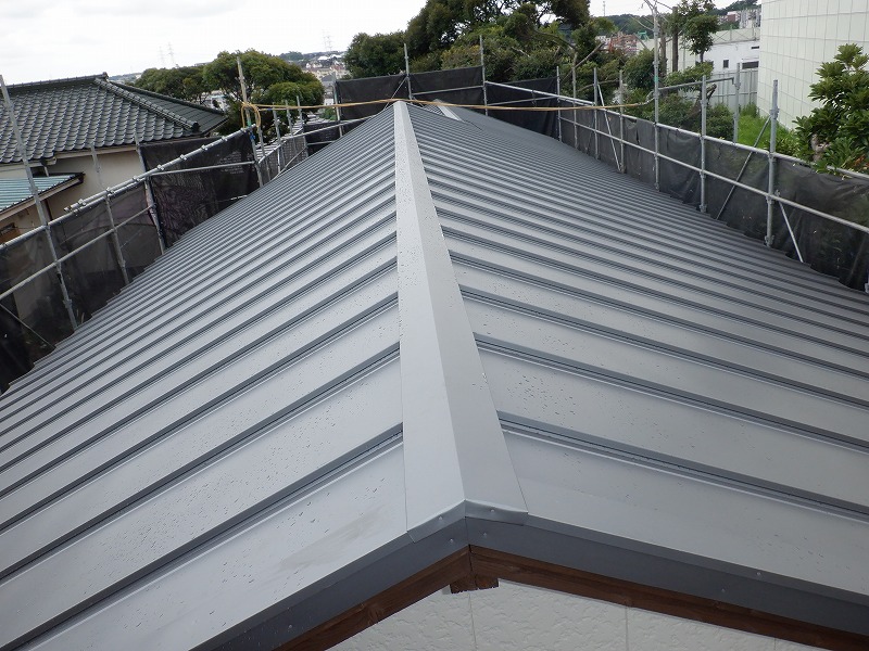 新規葺き工事です。前述したガルバリウム合板を用いて葺きました。合金特有の上質な質感です。