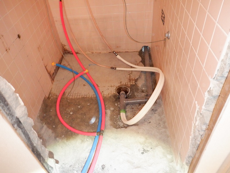 ここの排水管に洗濯機用の排水をつなぎ先行配管工事を行います。