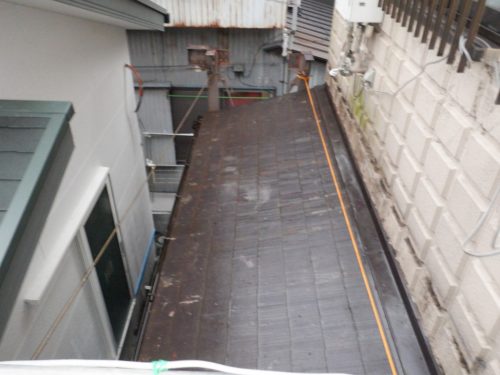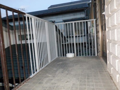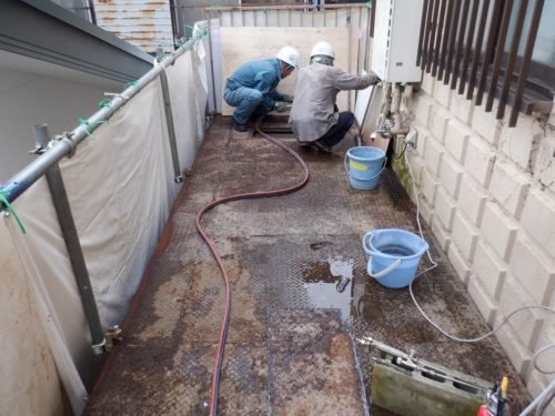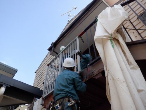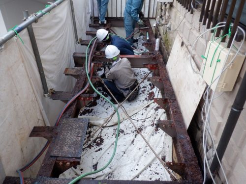 外部に鉄骨階段の踊り場があるのでこちらを切断します。