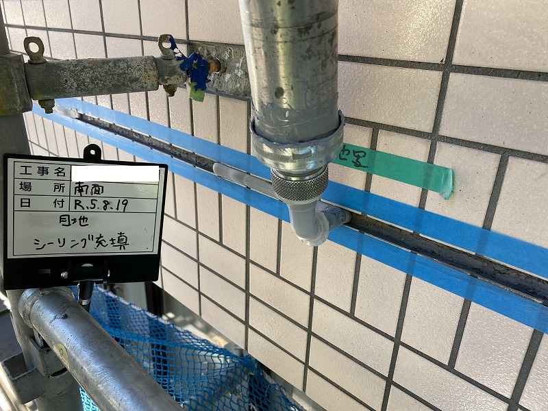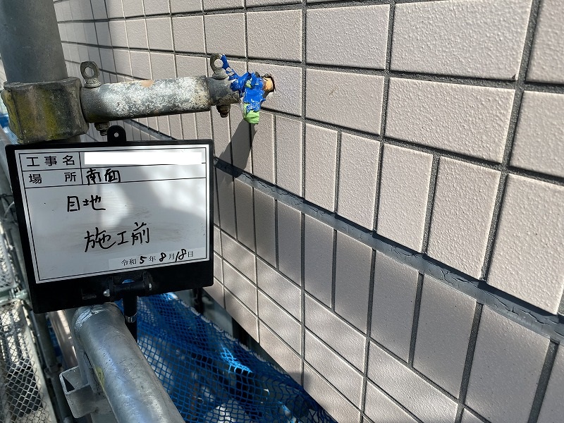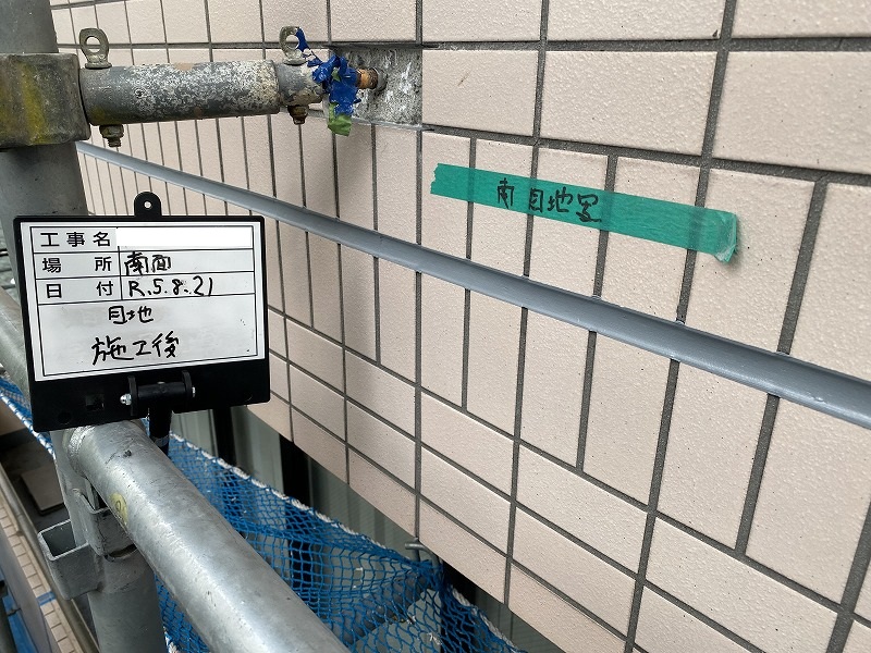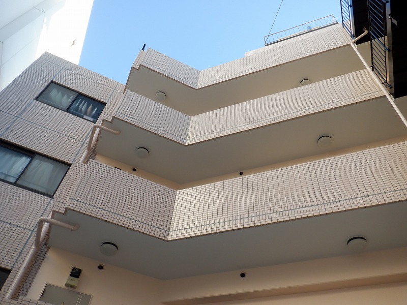 前回は建物外部に作業用の足場を掛けてタイル工事を行った所まででした。