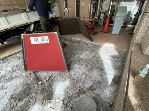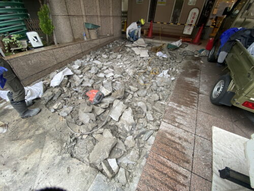 タイルと下地バサモルタルをハツリ撤去していきます。