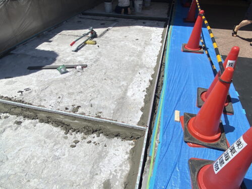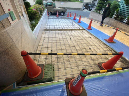 コンクリートを打設していきます。写真右側を通路として確保しています。