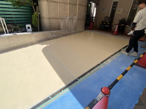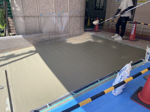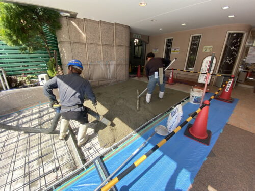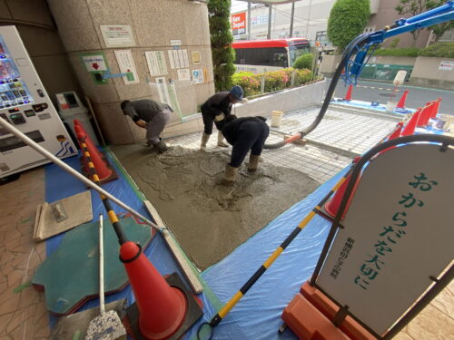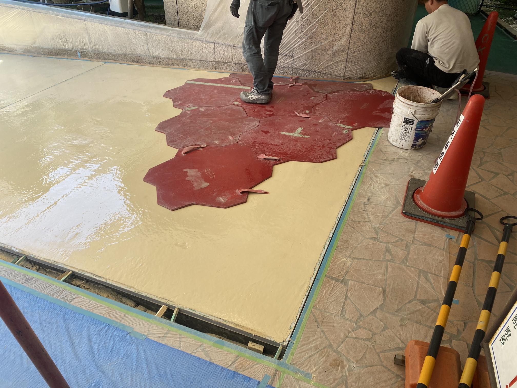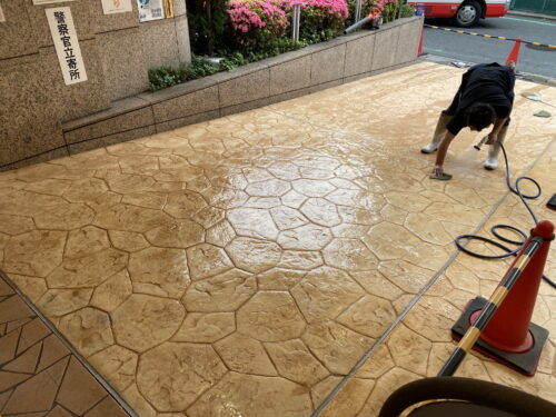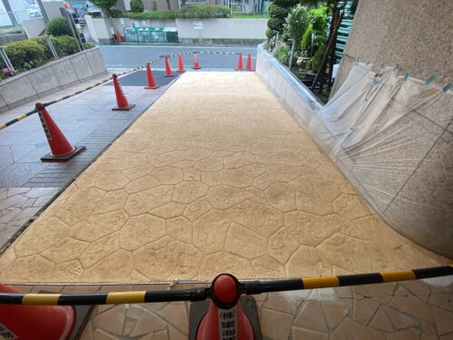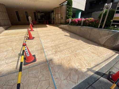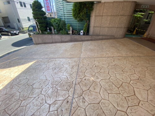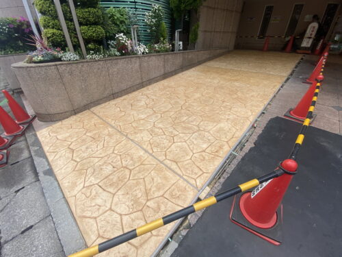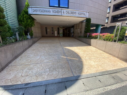 横浜市港北区、病院正面玄関スロープ スタンプコンクリート改修工事