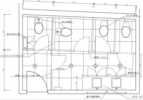 工事後は男子小便器とSKを撤去して独立した男子トイレと