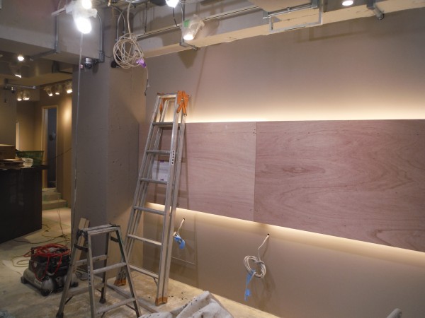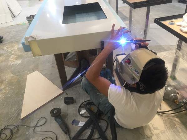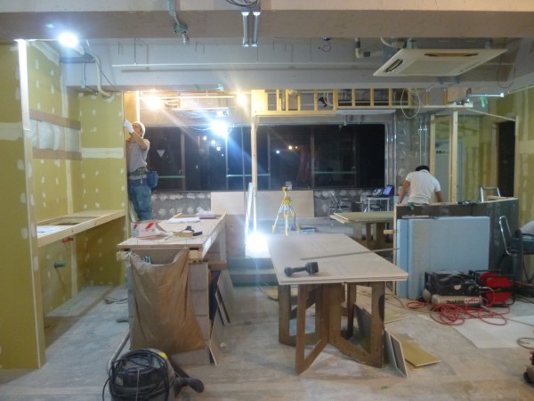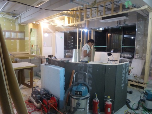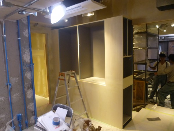 その頃作業場では什器(鏡台やカウンター)などの製作です