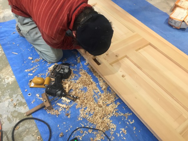 今回建具は既製の無垢材を使用したので取っ手や錠前などの加工をします!