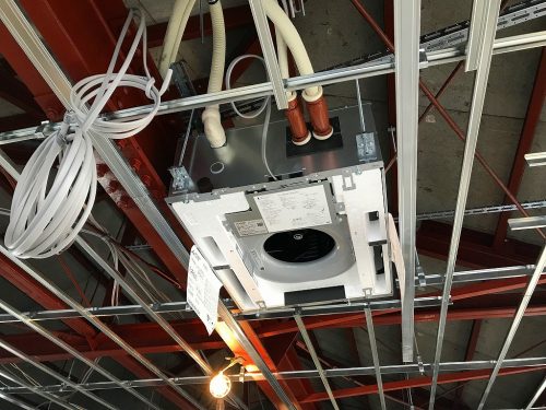 同時に空調機械の吊り込みやダクトの配管も合わせて行います