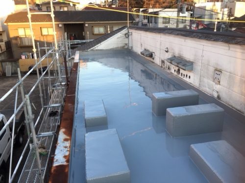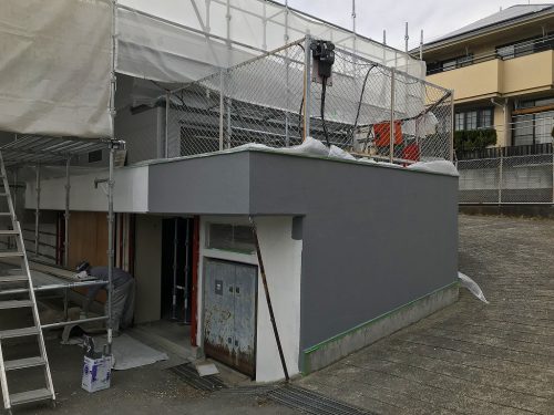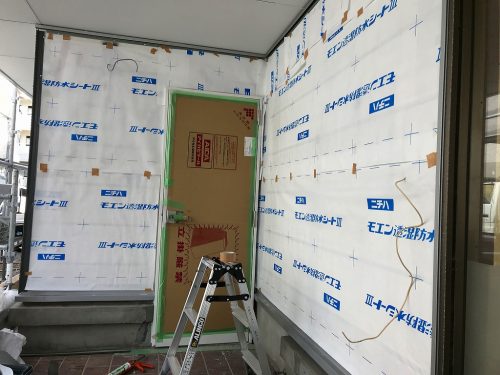 外部も同時に防水工事・外壁工事が進みます