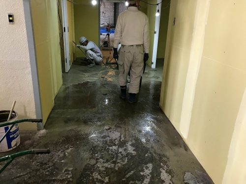 1F店舗部分はモルタル打設を施工し養生期間を設けます