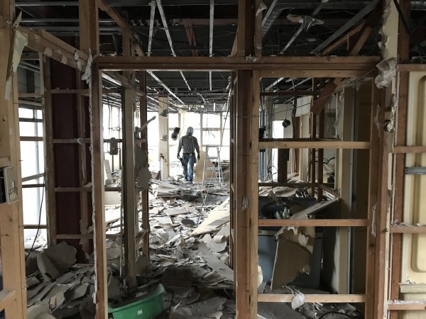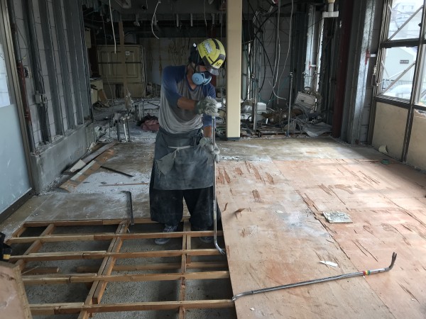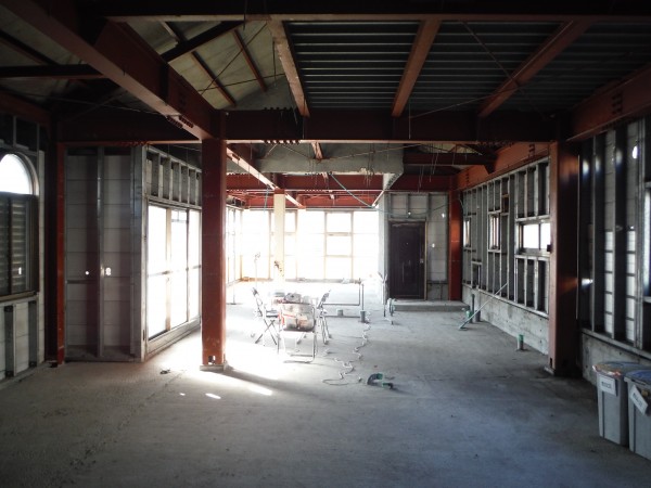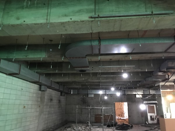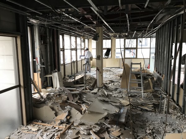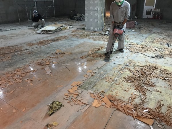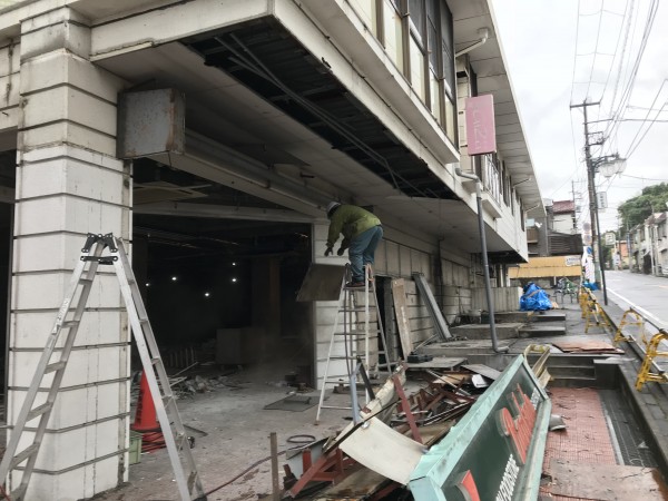 スーパーが入っていた店舗では天井落としと床タイルの剥がしを進めていきます