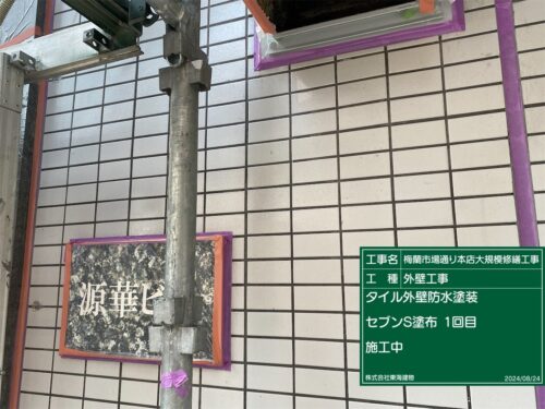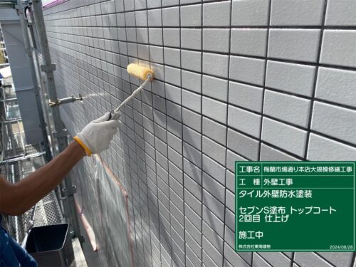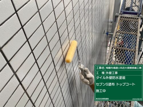 タイル外壁面にシーラーを2回塗布してから、