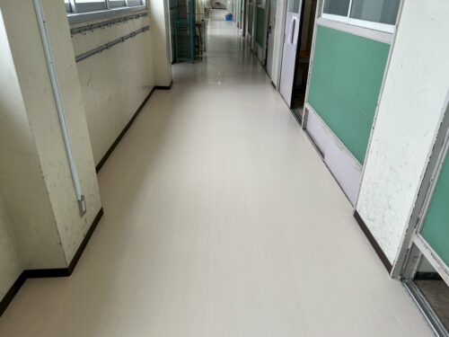 今回ご紹介させていただきます案件は、県立高校様ご依頼の床長尺シート貼付工事となります。